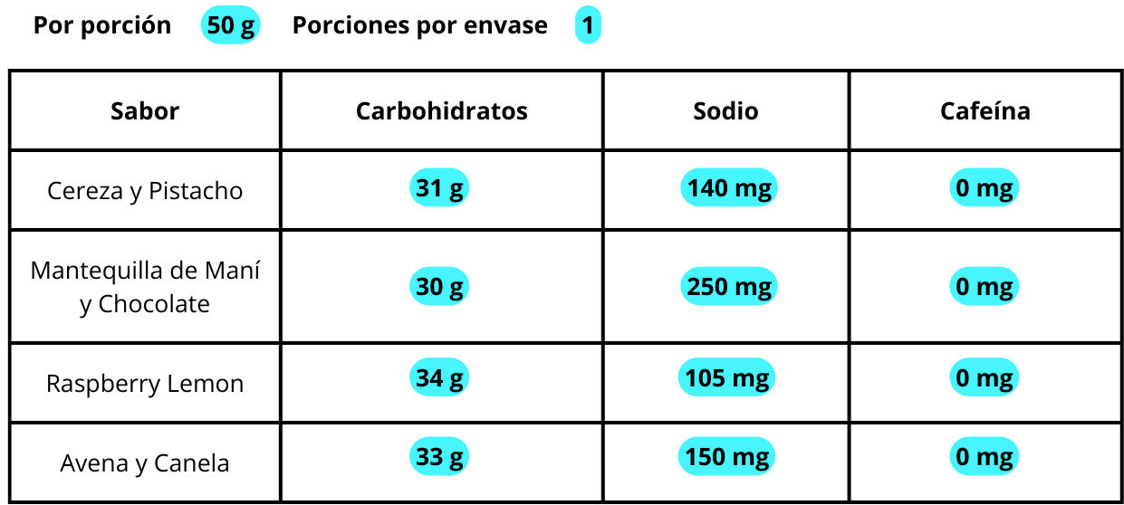 Diseñado como fuente de energía para cuando más lo necesitas, con un perfil nutricional adecuado para un snack en cualquier momento en que tengas hambre o durante actividades prolongadas.